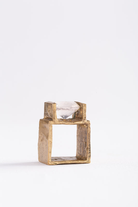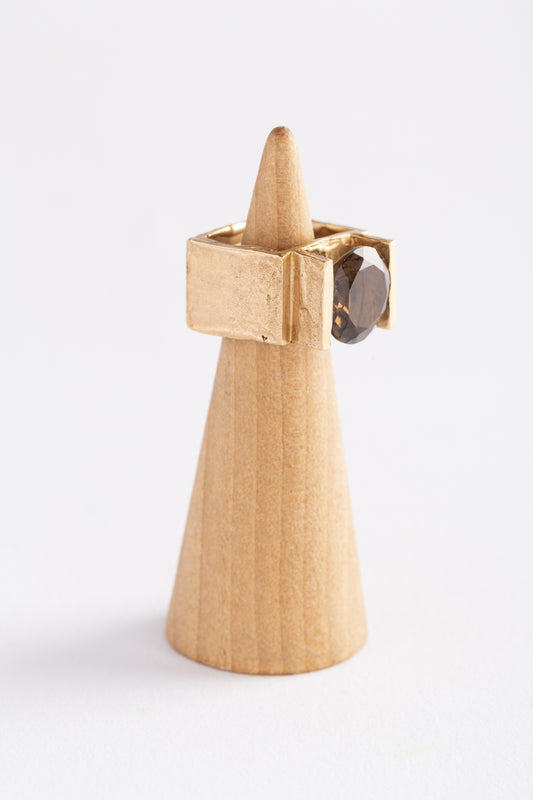 ANELLO BIG SQUARE, bronzo e quarzo brown fumè