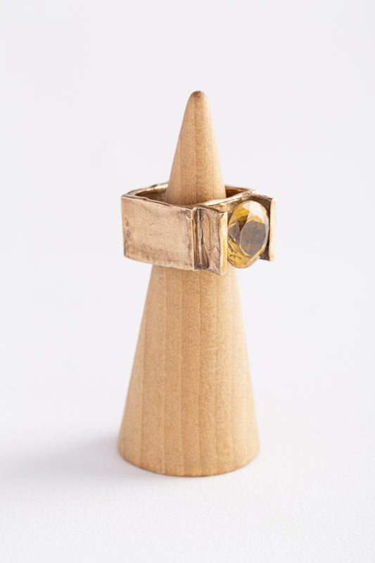 ANELLO BIG SQUARE, bronzo e quarzo citrino giallo